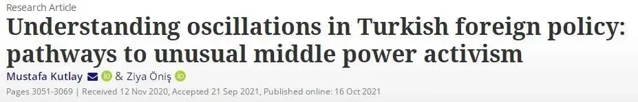 本文原载《第三寰宇季刊》(Third World Quarterly)第42卷2021年第12期,原题为《怎么意会土耳其扭捏不定的酬酢政策:不走寻常路的中等强国》,由文化纵横新媒体编译首发,仅代表作家本东谈主不雅点。著作有较瓦解的立场倾向和视角结果,仅供读者辨析参考。