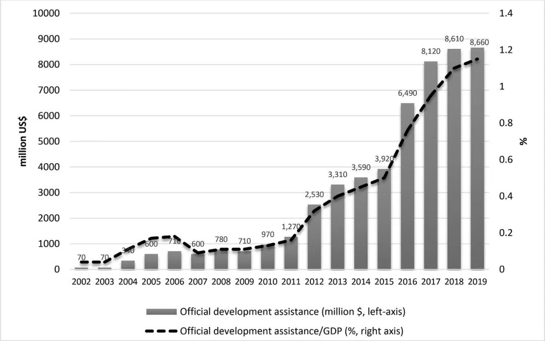 图一:土耳其官方发展补助(2002年至2019年)